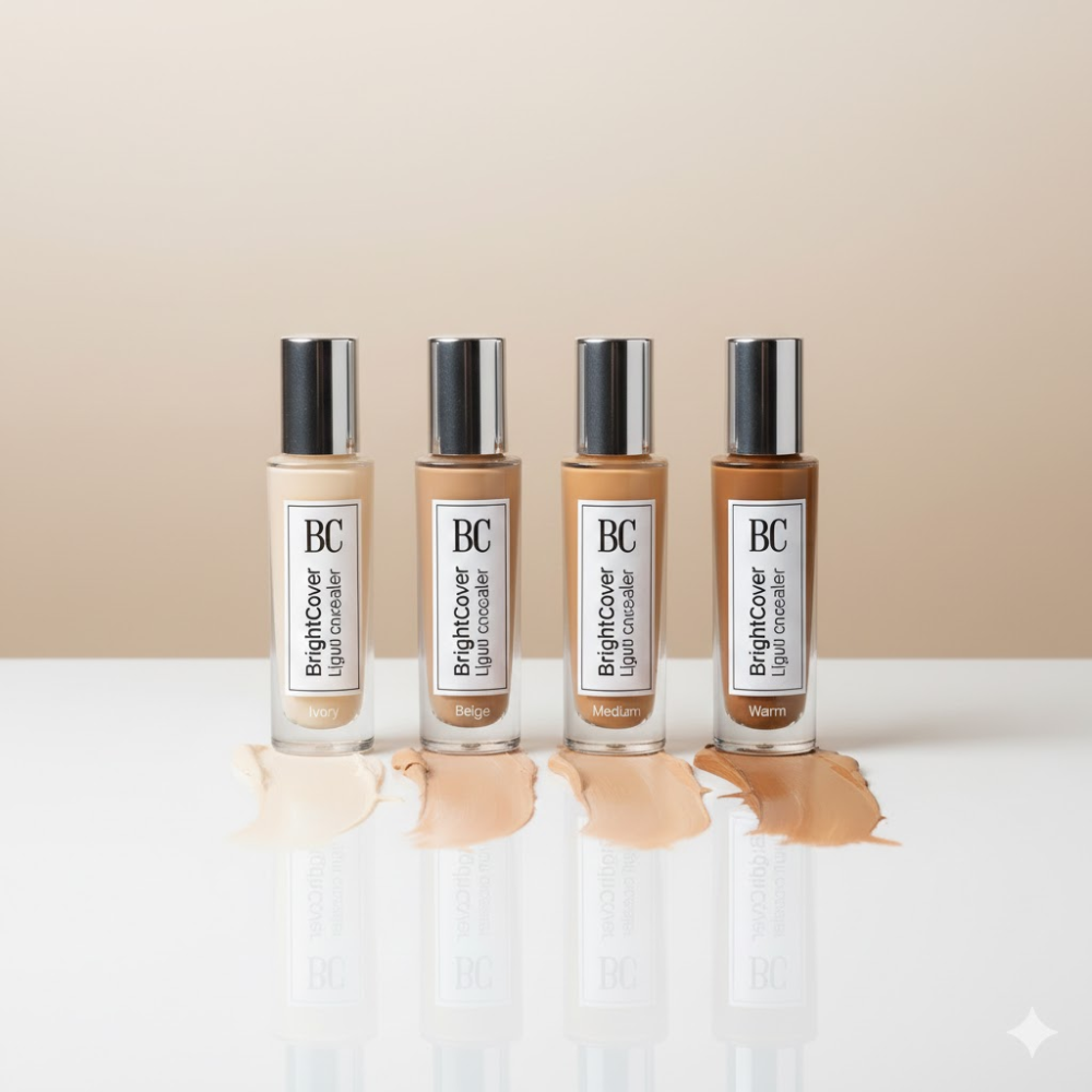 BrightCover Concealer effectively hides dark circles, blemishes, and imperfections.