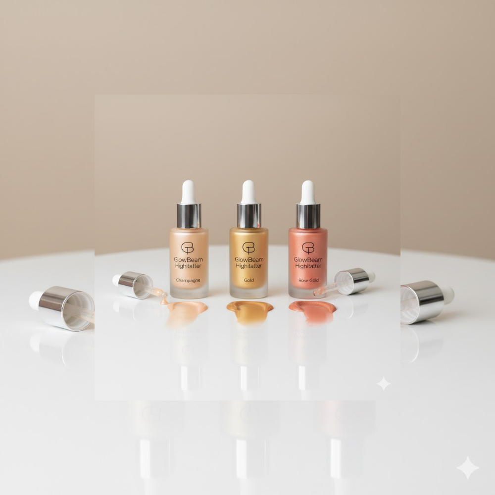 GlowBeam Highlighter enhances facial features with a luminous glow.